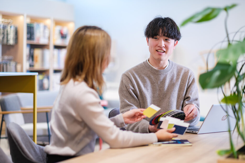 実際にものを手に取り、質感や色味を確認しながら提案できるのは大きな強みです。デジタルカタログだけでは伝わらない素材感を、お客様と一緒に確認できる環境が整っています。