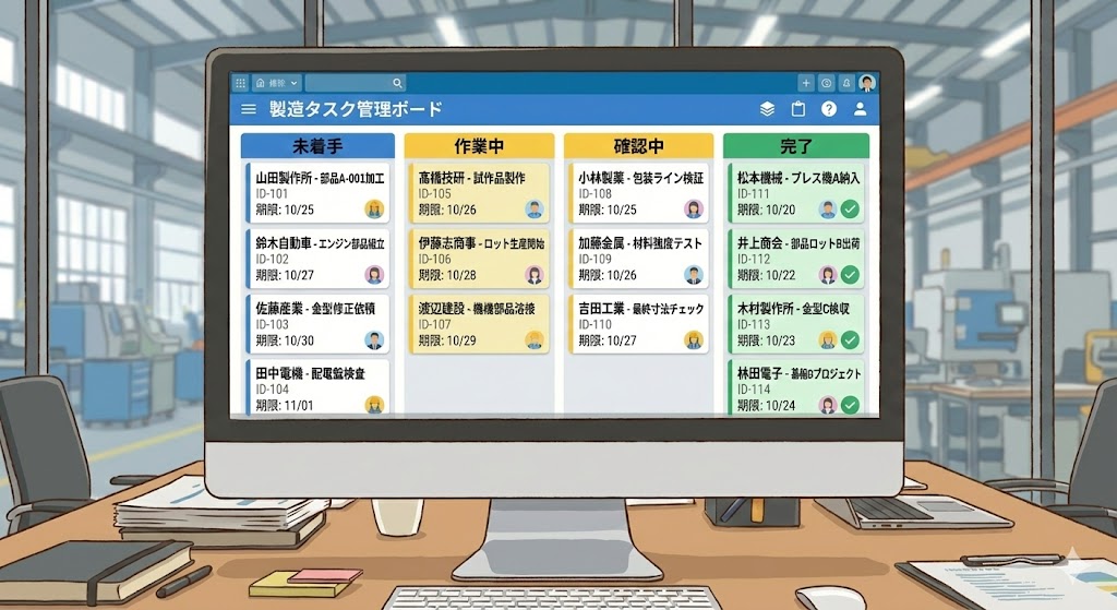 未着手・確認待ち・差戻し・承認待ち・完了など、状態が見えるだけで属人化は大幅に減ります。